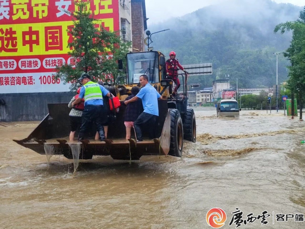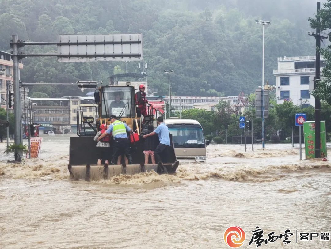 6月20日凌晨,南丹县遭受持续强降雨侵袭。当日上午11时许,城关镇小场社区一低洼路段很快被洪水淹没,一辆乘载11人的中巴车尝试涉水通过时,瞬间熄火抛锚,被困在了积水中央。